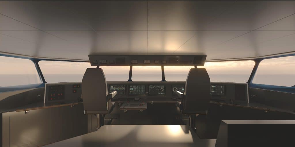 By contrast, the structural qualities of the trimaran, with its wide stance across three hulls, enable a stable crossing regardless of sea state. There is no risk of losing pallets overboard: they are protected from the elements, stored deep within the vessel, below deck.